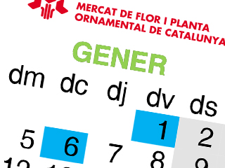 Recorda que el divendres 1  i el dimecres 6 de gener, ambdós dies festius a Catalunya, el Mercat de Flor i Planta Ornamental romandrà tancat.