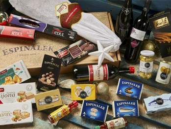 Es tracta de 5 completíssims lots de casa Espinaler compostos d’una espatlla serrana, un xoriç i una llonganissa ibèrica, dues salses espinaler, uns musclos, unes sardines, unes cloïsses, unes escopinyes, unes navalles, bonítol, unes carxofes, unes olives, a més d’unes neules, tres barres de torró, figuretes de massapà, pecats de xocolata, un vermut negre, in vi negre Gran Castellflorit i un cava Brut Nature Segura Viudas Aria. Un conjunt de begudes i productes gourmet que segur que enriquiran els àpats d’aquests dies.