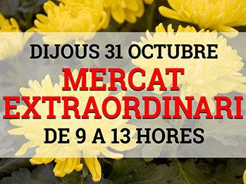 El proper dijous 31 d’octubre durem a terme un MERCAT EXTRAORDINARI en motiu de la Diada de Tots Sants. La Venda Directa del Mercat obrirà de 9 a 13 hores.