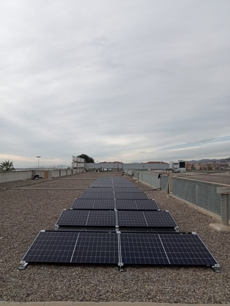 Des d’aquest passat cap de setmana ja estan en funcionament les plaques fotovoltaiques que hem col·locat sobre el terrat de l’edifici principal del Mercat.